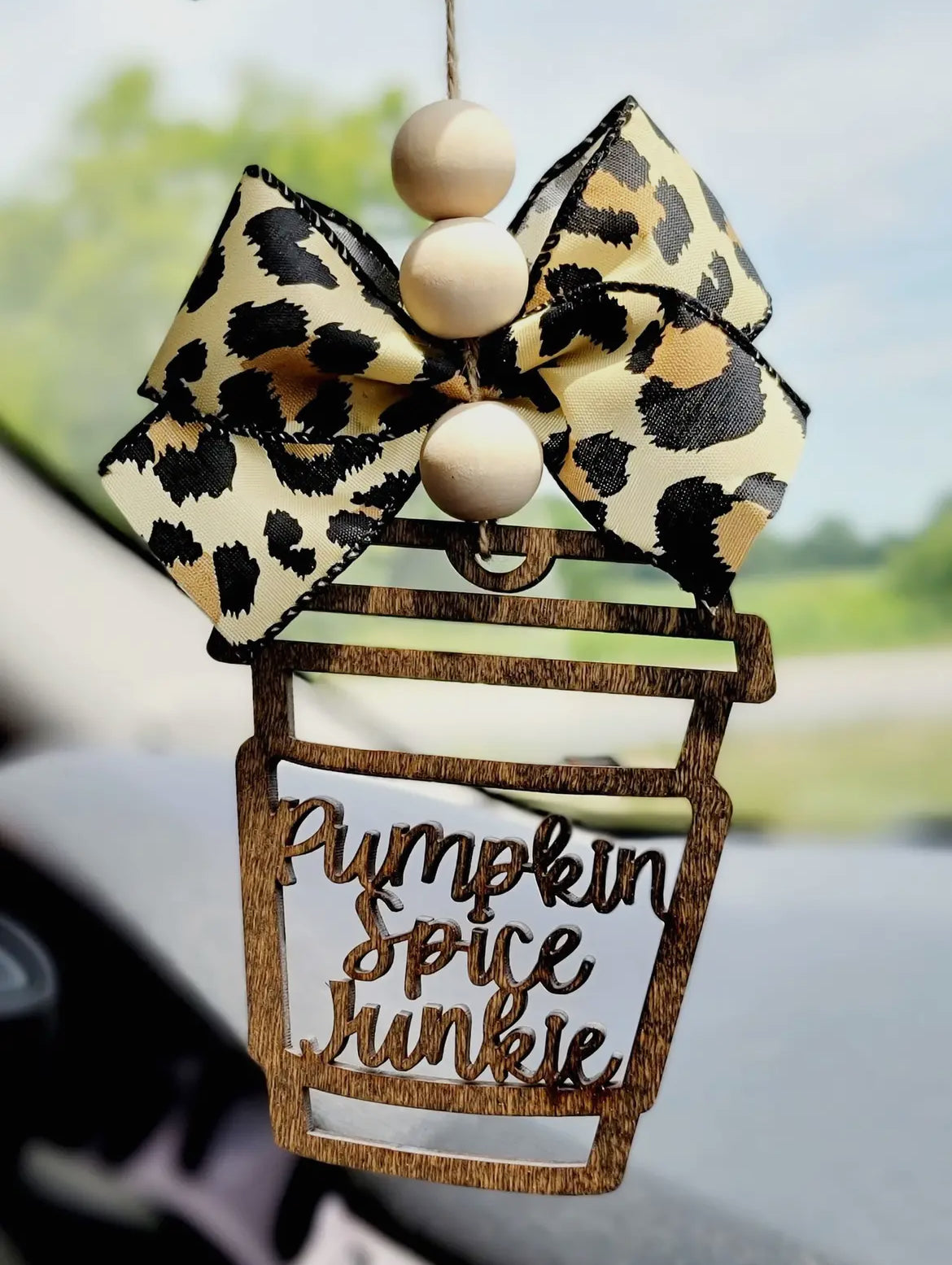 30oz tumbler and Pumpkin Spice Car Hanger with a cow print bow (preorder)